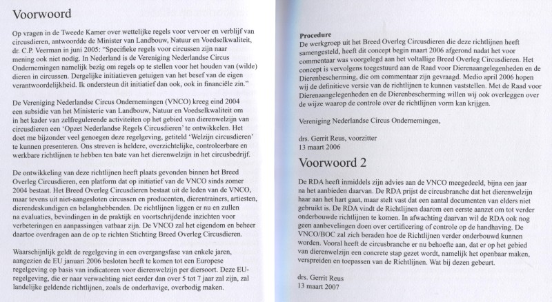 Vanuit de VNCO is er alweer meer dan 10 jaar geleden, ik meen rond 2004, een boekje uitgegeven. Alle toen in Nederland reizende circussen, ook de Duitse Renz, is toen betrokken bij het advies voor de landelijke regels.
