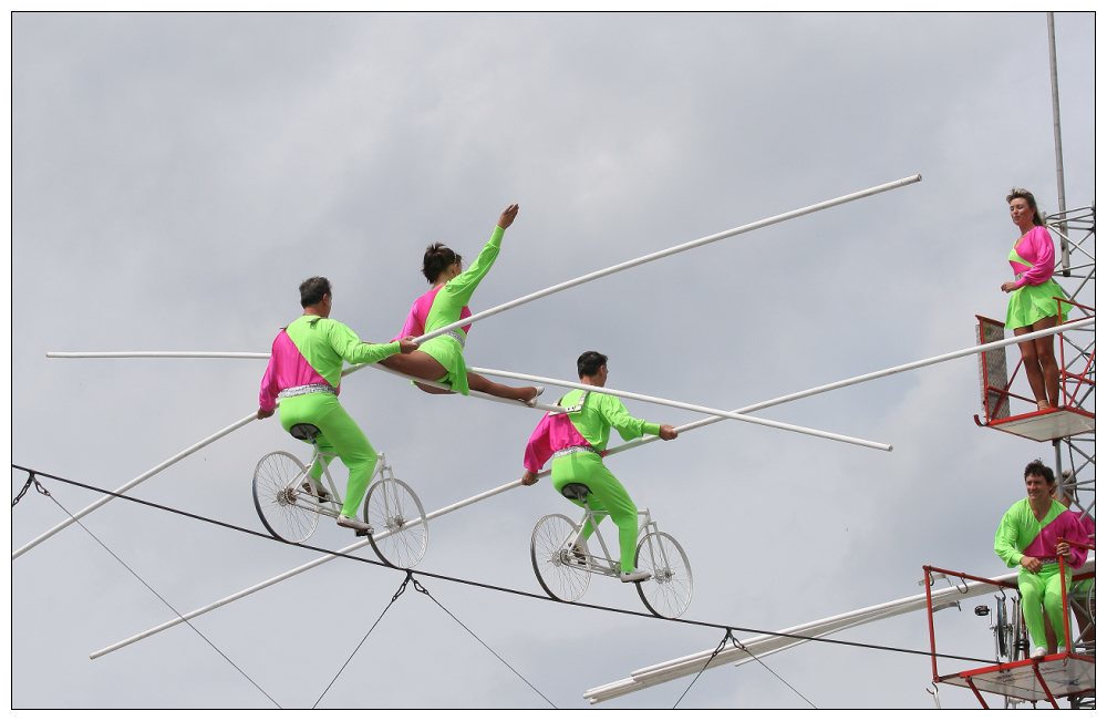 Hogedraadacts op diverse niveaus, en dan bedoel ik de hoogtes waarop de stunts plaatsvinden.