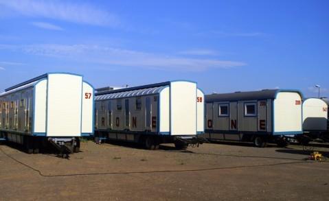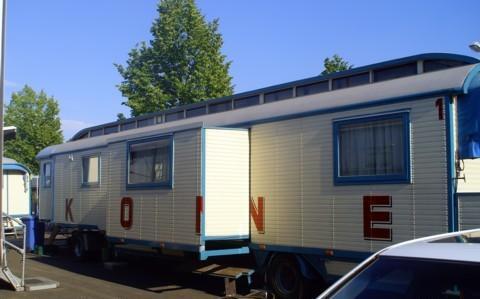 En inderdaad heeft caravans tellen niet veel zin gezien de meeste caravans over het algemeen op een terrein nabij staan. Alleen de artiesten met dieren en de dierenverzorgers staan direct bij de tent. Soms staan zelfs de staltent en de olifanten op een ander terrein. En hoeveel man gaan er wel niet in een manschappen trailer? Bij Arlette Gruss slapen maarliefst 16 mensen in een combi! Zie het blog van Arlette Gruss met foto's. Ook nog ruim ook trouwens, speciale uitschuifbare trailers gemaakt door procar.
