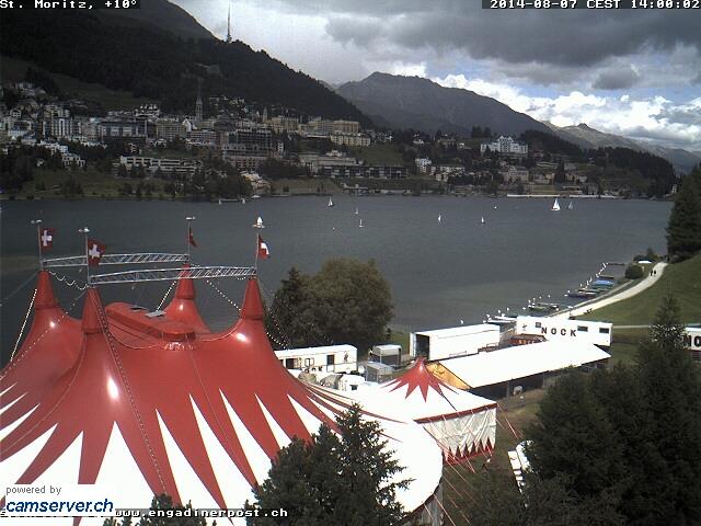Op een heel andere webcam, in St Moritz, is op dit moment wel Circus Nock te zien: