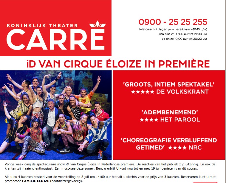 De site van Carré: https://carre.nl/voorstelling/cirque-el ... circus+VVK