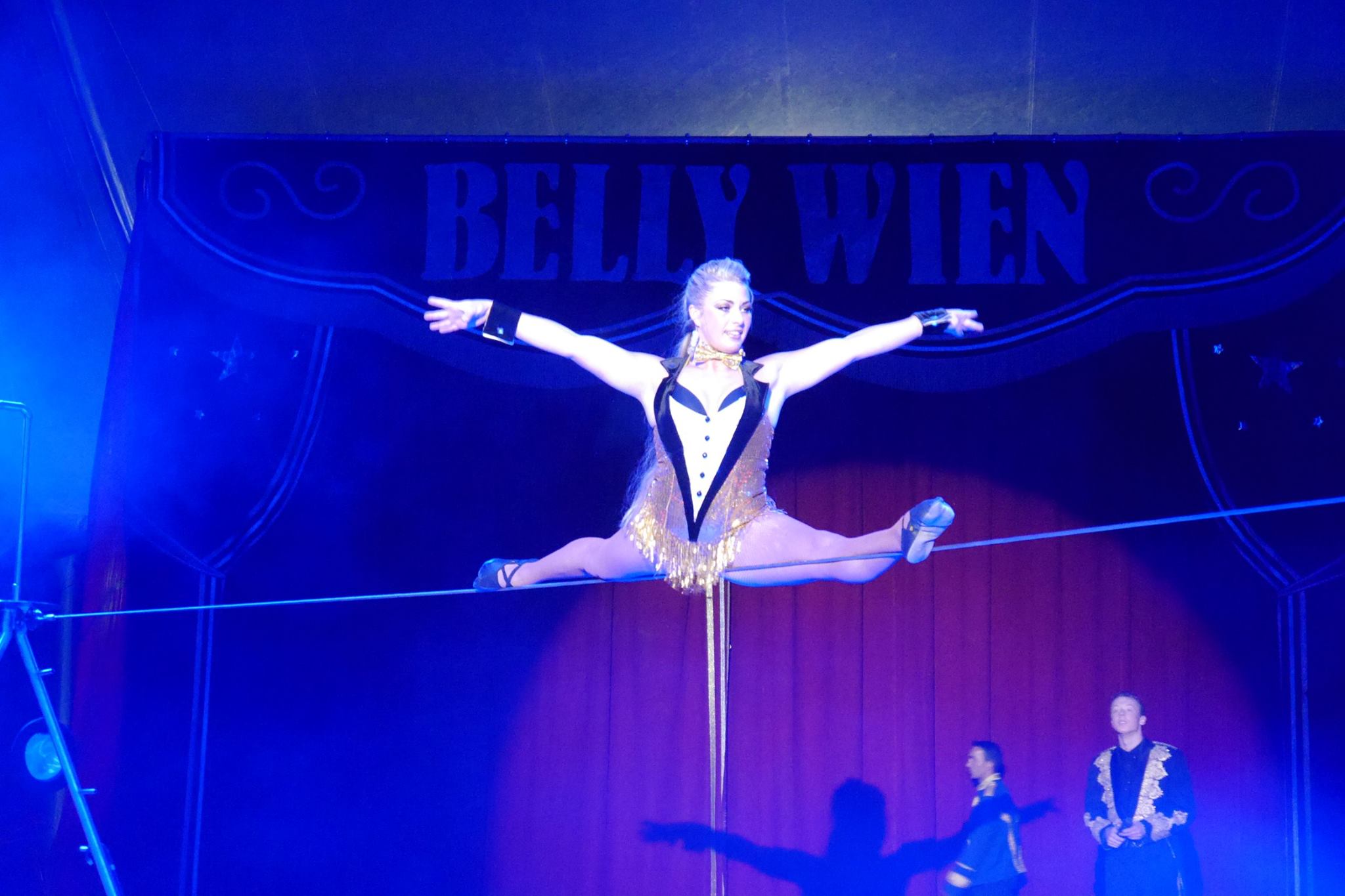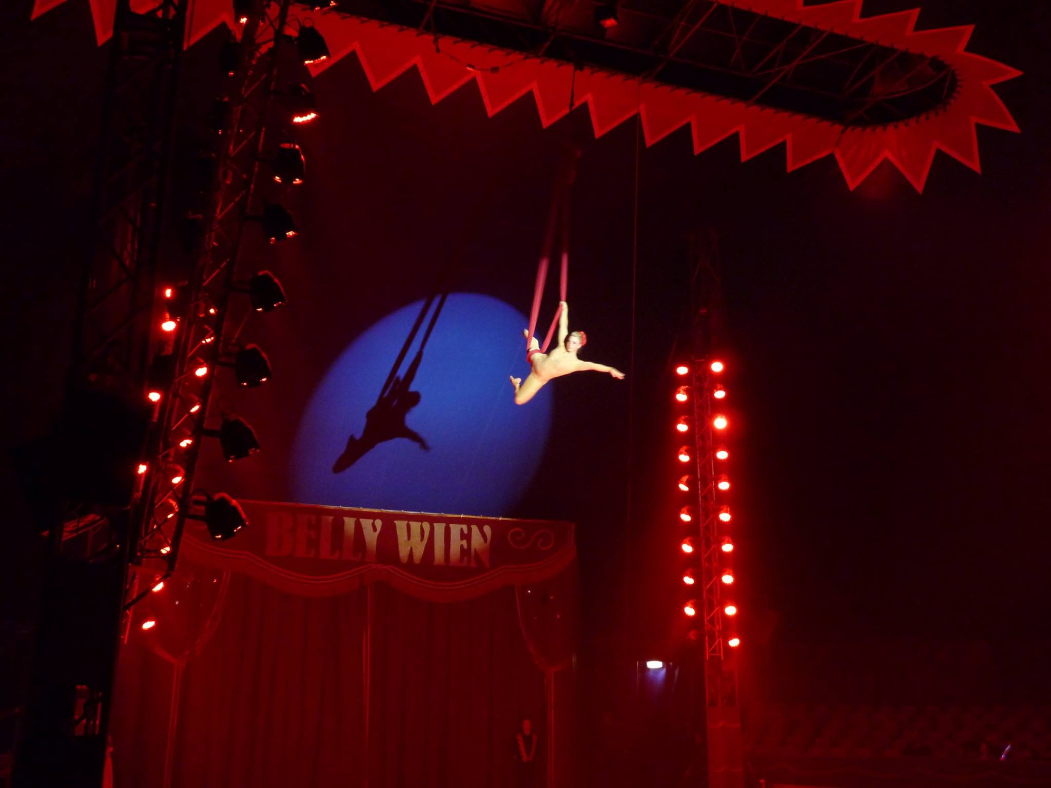 Alhoewel de opkomst iets minder groot was dan bij het kerstcircus in Tilburg enkele maanden geleden, leed de sfeer daar bij vanavond bij Belly Wien geen moment onder. En alhoewel ik hun voorstelling in 2013 al drie keer had gezien, heb ik me uitstekend vermaakt. Mandy Zinnecker is helemaal in haar rol gegroeid met haar act op de strakke draad en aan een zweefdoek hoog boven de piste. De acrobatiek te paard van Duo Stipka bezorgde me kippenvel. En de entree van giraffe Kenay, mascotte van het circus, zorgde - versterkt door fraaie belichting - voor een wow moment. De artiesten kregen dan ook een staande ovatie na afloop.