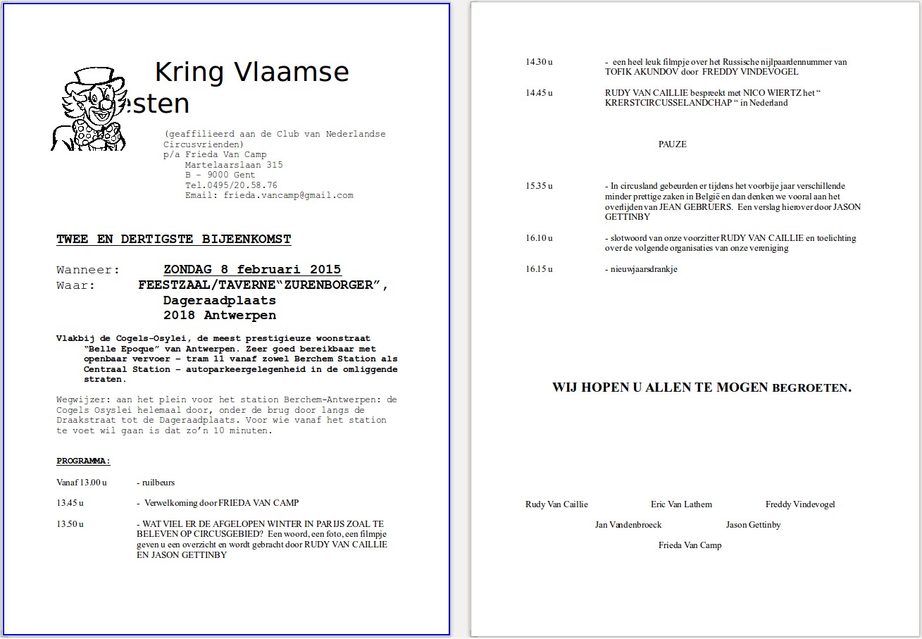 Bij voldoende belangstelling kunnen we zaterdagavond een gezamenlijk circusbezoek organiseren!