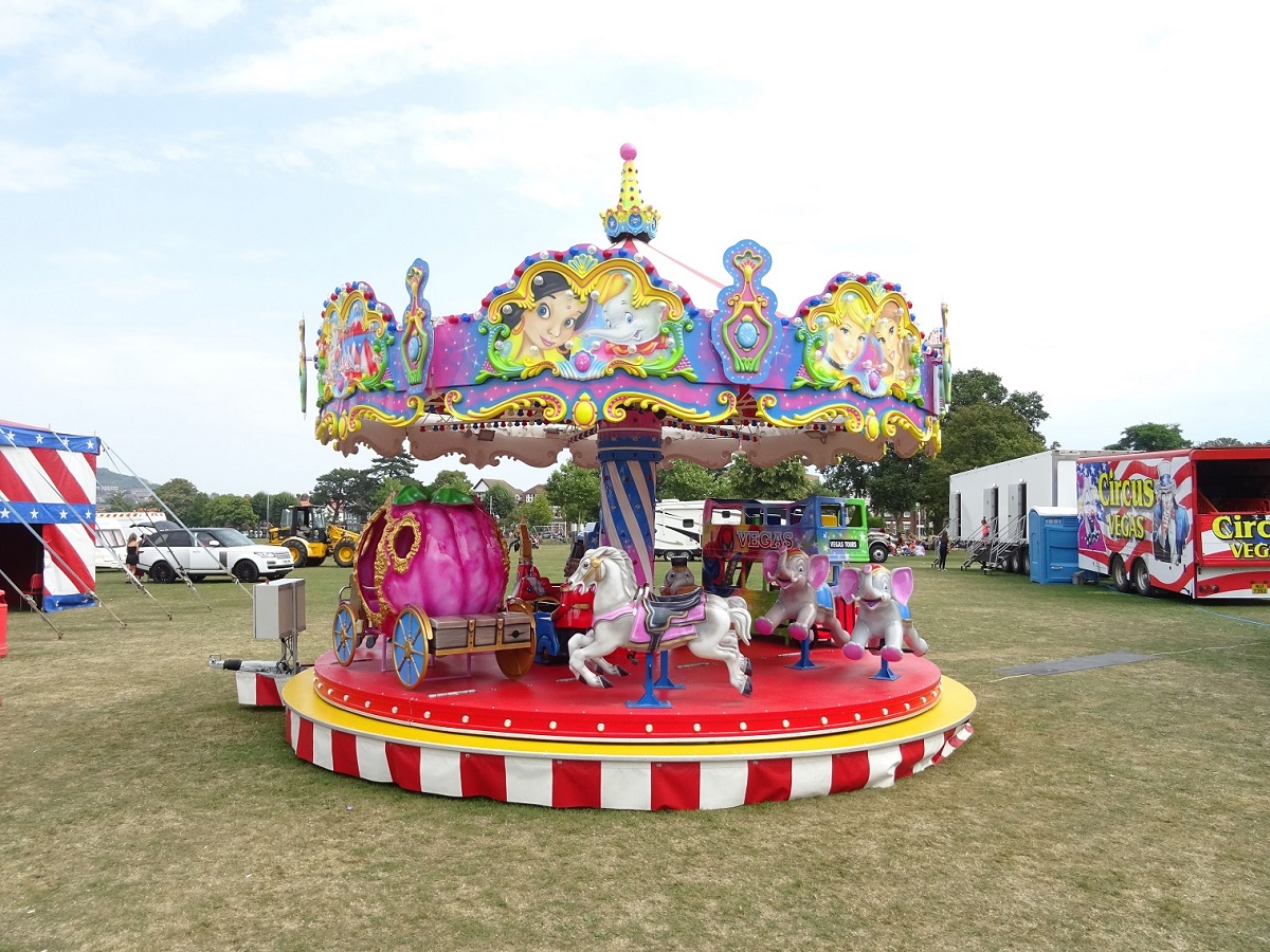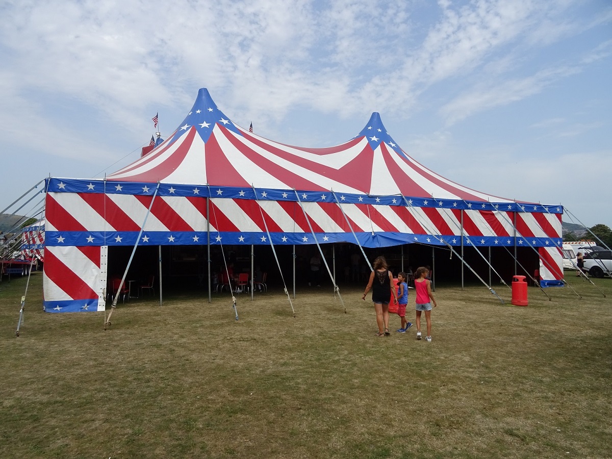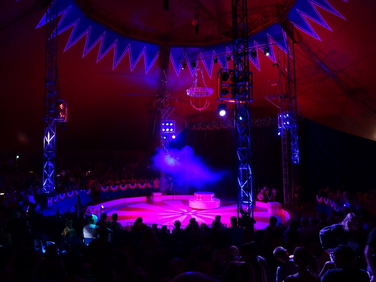 De traditionele standplaats van circussen in Folkestone is steeds Radnor park, een groot grasveld op tien minuutjes wandelen van het stadscentrum. Het circus stond ruim opgesteld en ziet er toch wat anders uit dan het standard circus (voor zover dat bestaat natuurlijk). De rood-wit gestreepte tent en voortent (met blauwe accenten) mochten er zeker zijn. De talrijke vrachtwagens vielen zeker op en hoewel voor sommigen waarschijnlijk een lust voor het oog, voor mij persoonlijk veel te druk. Onmiddellijk na de kassawagen hadden ze ook nog een kermismolentje opgebouwd voor de kleinsten. Ondanks de enorme hitte, kwam het volk massaal afgezakt om de voorstelling van 14 uur bij te wonen. Ik denk dat de tent voor zo’n 80% vol zat. Er bevonden zich ventilatoren in de tent maar het was er toch enorm heet. Desondanks zat de sfeer er goed in.