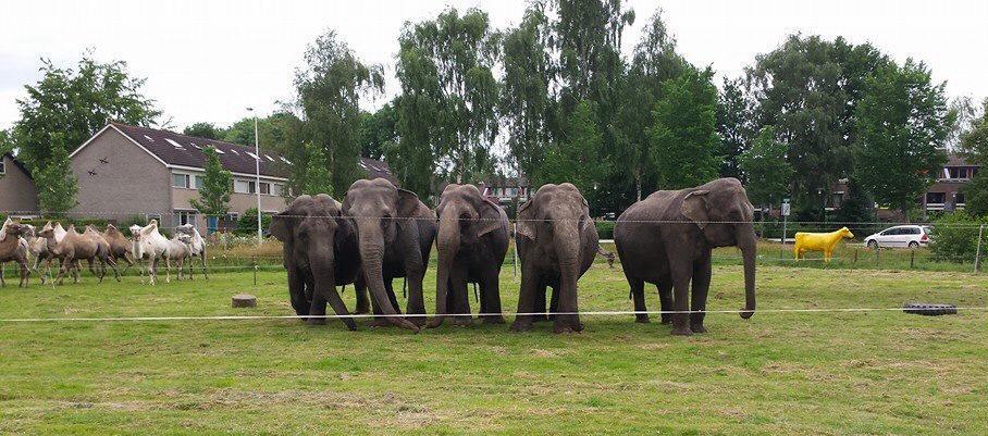 Ben het niet met je eens dat de vijf olifanten samen optraden, althans op de foto's is dat niet te zien.