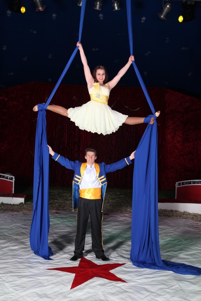 Eveneens van onze oosterburen komt de knappe acrobate Geraldine Spindler, die behalve een solo-nummer, ook een prachtig duo vormt met Jeffrey Freiwald in het ontroerend mooie 'Beauty and the Beast'. Wat de acrobatiek betreft komt tenslotte de jonge artieste Jennifer Freiwald adembenemend knap koorddansen.
